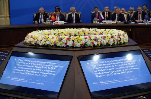 На заседании Совета ПА ОДКБ Торага Жогорку Кенеша Кыргызской Республики Дастанбек Джумабеков обозначил приоритеты председательства Кыргызской Республики в Организации Договора о коллективной безопасности в 2019 году. Председатель ПА ОДКБ, председатель Государственной Думы Федерального Собрания Российской Федерации Вячеслав Володин отметил положительный результат практики выездного заседания Совета ПА ОДКБ.