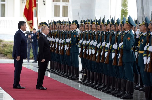 Официальная церемония встречи президента Кыргызской Республики Сооронбая Жээнбекова и президента Российской Федерации Владимира Путина состоялась в госрезиденции «Ала-Арча».