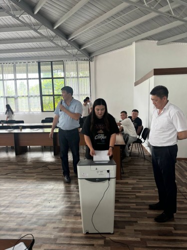 Для слушателей электоральной школы сотрудники ЦИК Кыргызской Республики организовали голосование за три политические партии с использованием