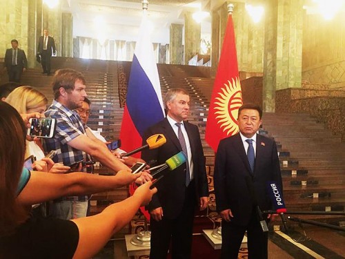 Председатель Государственной думы России Вячеслав Володин 28 июня с официальным визитом посетил Бишкек и встретился со своим коллегой Торага Жогорку Кенеша Кыргызской Республики Чыныбаем Турсунбековым и президентом КР Алмазбеком Атамбаевым.