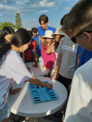 Вечером на пляже озера Иссык-Куль ребята из других стран научились казахстанским национальным играм, в их числе — тогыз кумалак, что в переводе означает «девять камешков». Игра развивает математическое мышление и воспитывает выдержку.