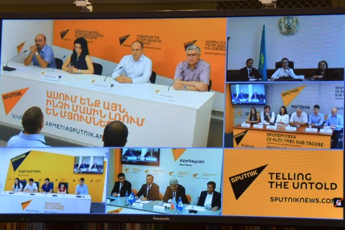 Инновационный формат видеоконференции — многосторонний телемост, организованный при содействии информационного агентства «Sputnik»,был использован впервые.